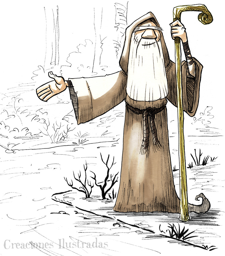 Este personaje con aspecto bonachón es el dios Aramo, de la mitología astur. Es protector de las encrucijadas y de los caminos. De hecho, su nombre significa «cruce de caminos».
