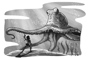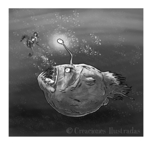 ¡Un libro juego! Sí, de aquellos que leíamos de jovenzuelos donde podíamos elegir qué camino tomar en cada momento. En este caso voy de la mano en esta aventura submarina con Daniel Tejero Hernando y con Roberto Malo. Y menos mal, porque yo nado regular. Si queréis dar una vuelta por el fondo del mar, podéis encontrar un medio ideal para hacerlo sin mojarse en la web de Apache Libros. Para abrir boca, aquí tenéis algunas de las ilustraciones que podréis encontrar en su interior.