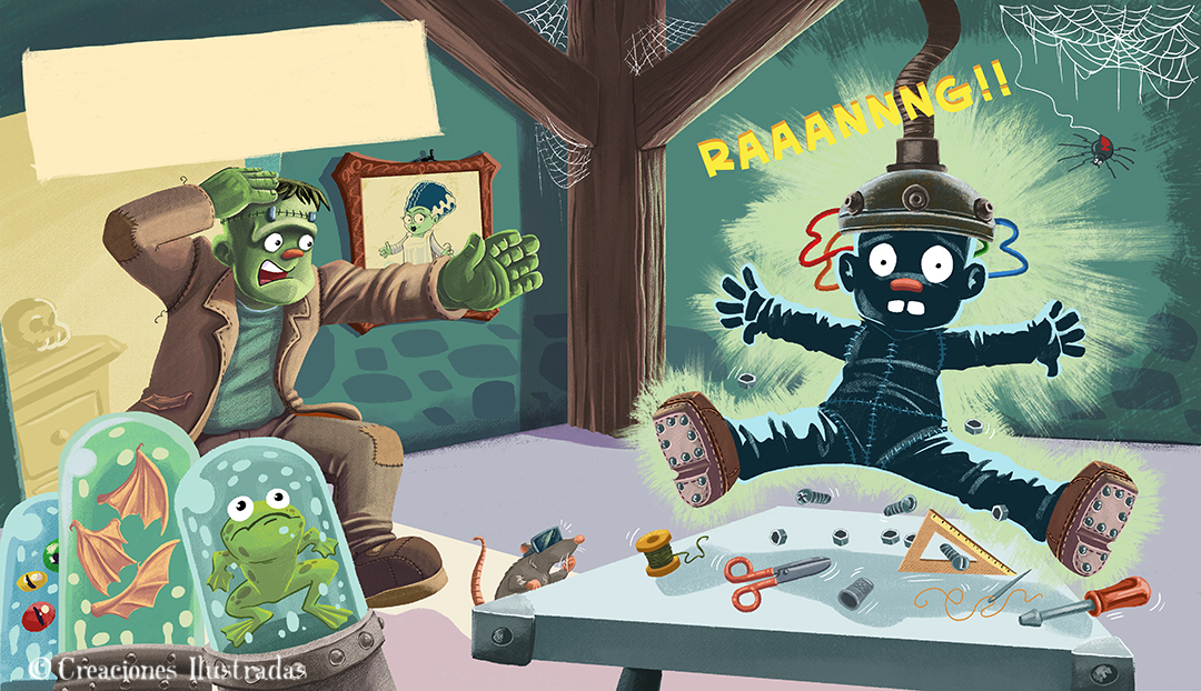 Este álbum ilustrado está publicado por Serendipia Editorial. El pobre monstruo de Frankenstein se siente solo y decide fabricarse un hijo a su imagen y semejanza. Este es un cuento que habla de la vida, de la creación, de la ética en la ciencia y de la metafísica. Sin olvidarnos de las energías renovables. Pero, sobre todo, plantea la importancia de elegir bien los trozos de cadáver a la hora de fabricarte un heredero. Ah, y con las rimas asonantes y divertidas de Patricia Gayán. Pero lo importante es lo otro. Lo de los trozos de muerto. Y que está lleno de monstruos, que eso siempre mola.