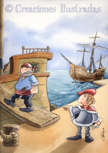 Quién me iba a decir a mí, cuando era niño y devoraba los libros de Juan Muñoz Martín, quemándome las pestañas mientras seguía las aventuras del pirata Garrapata o de Fray Perico y su borrico, que un día tendría la oportunidad de ilustrar varios de esos libros. Gracias a Mestas Ediciones me di el gustazo de poner en imágenes las delirantes y surrealistas historias de Juan Muñoz en una colección de 12 títulos. En esta galería podéis ver las ilustraciones que hice para algunos de esos libros: Los trece hijos brutos del rey Sisebuto, Llegan las tres carabelas viento en popa a toda vela, El comisario Nazario, Baldomero el pistolero, El oso Fructuoso o Caralampio Pérez. Estos libros se publicaron en el 2006 y ya están descatalogados. Los mantengo en mi galería de trabajos porque les tengo cariño.