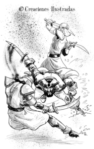 En Los dientes del Puma, escrito por Enrique Dueñas y publicado por Apache Libros, he buscado que mis dibujos recuerden a los que podíamos encontrar en publicaciones míticas como La espada salvaje de Conan, ya que la historia tenía un aire de aventuras pulp, muy similar a los relatos de aquel tipo de publicaciones. Disponible en Casa del Libro, El Corte Inglés y en tu librería favorita. Además, por supuesto, en la web de la propia editorial, aquí.